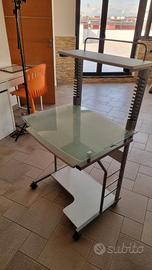 Vendo questo tavolo/scrivania portacomputer in metallo e vetro, con portatastiera estraibile, in perfette condizioni.