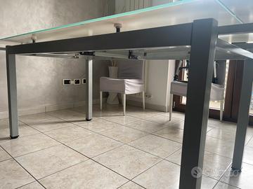 Vendo tavolo allungabile in cristallo bianco com strutura in ferro…tavolo fatto bene non modello economico… Misura 150 chiuso aperto 220. Miaura chiusi 150x85 altezza 76…’