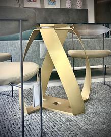 Tavolo Ovale Bon Bon dal design unico e moderno., adatto per arredare con gusto il proprio living Top in vetro bronzato e base laccata in oro