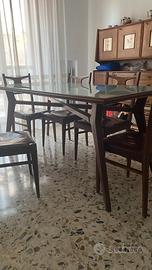 Tavolo anni 50 in noce e cristallo 180x85