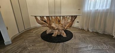 Tavolo pranzo con radice indonesiana e cristallo