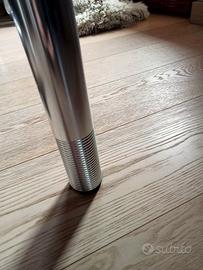 Tavolo da pranzo design gambe acciaio top multistrato con finitura bianca sul piano.