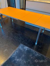 Iconico tavolo Ycami anni 90 estendibile a due lunghezza : base 120 cms - medio 165 cms - lungo 210 cms - struttura e gambe in acciao ed alluminio cromate - reparto interno per inserimento elementi prolunga - top in laminato arnacione opaco - molto pratico ed elegante - solidissimo in tutte le misure