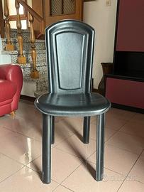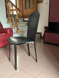 Tavolo "Reflex" con base in cristallo curvo sp. 12 mm, piano in cristallo sp. 12 mm. Diametro cm 120 x 72h completo con 4 sedie interamente rivestite in pelle nera anche le gambe