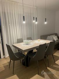 Vendo, per errato acquisto, praticamente montato e mai usato , tavolo pranzo marchio " La seggiola " nuova collezione allungabile Ragnar con base in metallo verniciato nero, piano in nobilitato, tranché tinto cemento. Dotato di 2 pratiche allunghe da 50 cm.