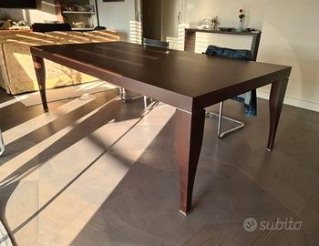 Elegante tavolo di design, ideale sia come tavolo da pranzo che come ampia scrivania direzionale. Realizzato in pregiato legno wengé, si distingue per le linee pulite e contemporanee, arricchite da raffinati inserti in acciaio sulle gambe che ne esaltano il carattere moderno e ricercato. Ogni dettaglio è frutto di una lavorazione artigianale di alto livello: un pezzo unico, costruito da maestri d’ascia. Le generose dimensioni (240 x 120 cm) lo rendono perfetto per ambienti spaziosi, sale da pranzo importanti o studi professionali di rappresentanza. Un arredo esclusivo, solido e senza tempo, pensato per chi cerca qualità, design e unicità in un unico elemento.Se vuoi, posso adattarlo per un pubblico specifico (es. marketplace online, fascia lusso, vendita veloce). Costo di spedizione a carico acquirente.