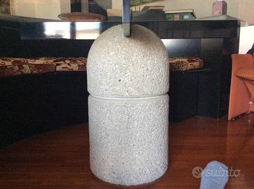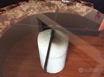 Tavolo pranzo SAPORITI Paracarro Base pietra grigia Cristallo diametro 140