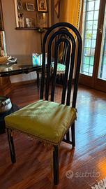 Tavolo in cristallo allungabile con base in marmo nero, 5 sedie, un tavolino in cristallo da divano in buone condizioni. Margine di trattativa.