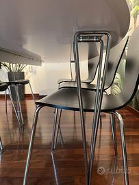 Le gambe a cavalletto, in acciaio cromato, offrono una solida e stabile base, e possono essere facilmente smontate per agevolare il trasporto. Formato “B614”: 240 x 120 x 72h cm. Stato di conservazione molto buono, avendolo utilizzato sporadicamente. Se desiderato, vendo anche sei sedie nere in legno laccato tipo “Butterfly” in buono stato (due con piccole ammaccature) a Eur35,00 cadauna (quelle in foto). Se davvero interessati, sono disponibile a videochiamata per sincerarsi dello stato del bene. Ho molto altro arredo domestico in vendita poichè non ci starà nella nuova casa (sigh!) - vedi altri miei annunci. Da ritirare in loco nel Monzese.