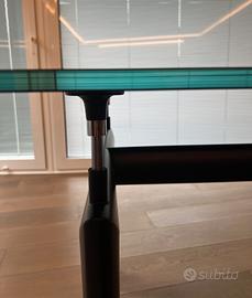Piano: rettangolare in vetro extra chiaro di mm 15 ("cristallo float" di Saint Gabain) laccato nero nella parte inferiore del piano.