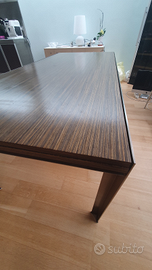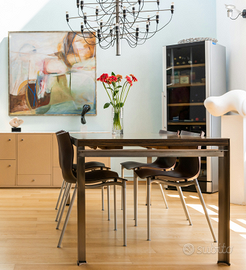 Tavolo Zanotta modello Estenso disegnato da Emaf progetti, allungabile con struttura in acciaio verniciato graffito e piano in ebano.