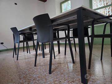 Vendo tavolo con pianale in legno bianco e struttura in metallo antracite con tasca centrale e 6 sedie design in resina antracite a corredo. Smontabile per trasporto.