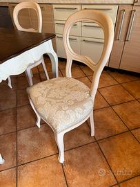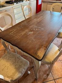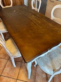 Vendo tavolo provenzale, con 6 seggiole ( una è da sistemare ) lungo 179cm, largo 90cm e alto 76cm.
