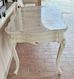 vendo per cambio arredo, tavolo provenzale fisso di 200*100cm, con gambe a sciabola in legno laccato e piano in marmo rosa .
