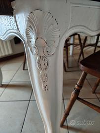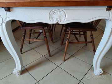 Tavolo provenzale in legno. Fascione e gambe bianche, piano color miele.