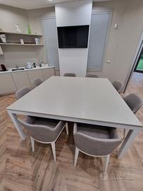 Vendo tavolo per conferenze o da interno con struttura tubolare in ferro e piano in laminato grigio chiaro. Il tavolo è in perfette condizioni. Misura 1600 x 1600 mm. Spedizioni a carico dell'acquirente. No perditempo.