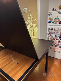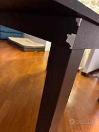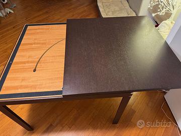 Vendo tavolo da pranzo moderno in color legno scuro (moro/wengé), ideale per chi cerca una soluzione salvaspazio che non rinuncia all'ospitalità.