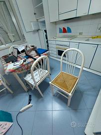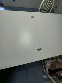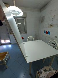 Tavolo quadrato allungabile a libro bianco e 4 sedie. 1 metro chiuso 2 metri aperto Sedie in legno, Tavolo ha le gambe in metallo (presenti segni di usura) e il piano in legno (ottimo stato).