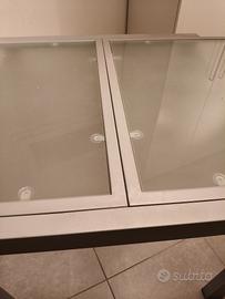 Tavolo quadrato allungabile, fusto metallo verniciato colore alluminio. Piani in vetro. Usato ma in buone condizioni. Misure: 92x90cm, aperto 180cm Altezza 74cm Si trova a Forlì, piano terra. Ritiro a carico dell'acquirente. Prezzo trattabile