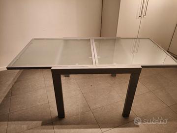 Tavolo quadrato allungabile con piano in vetro