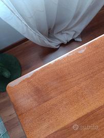 Tavolo 1mx1m aperto diventa 2mx1m. La superficie presenta qualche imperfezione e segni di usura come da foto. Condizioni buone.