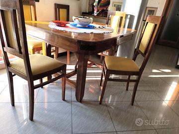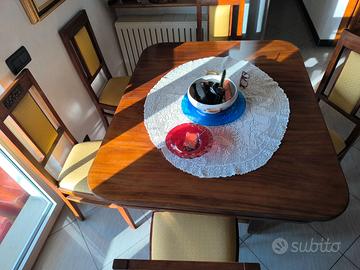 Tavolo quadrato listellato completo di sedie prolungabile per otto/dieci persone