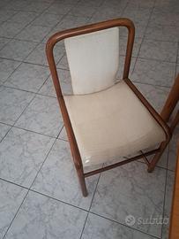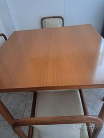 tavolo quadrato allungabile da 110 x 110 con allunga centrale da cm 40 in legno noce chiaro con 4 sedie in faggio con imbottitura in tessuto ecru