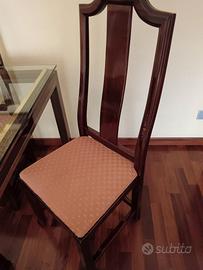 Tavolo quadrato con base in cristallo con intarsi ottone e radica completo di 4 sedie impottite smontabile per permettere il lavaggio.