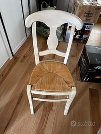 Tavolo da pranzo quadrato tutto legno piu 4 sedie in legno con sedura in paglia intrecciata