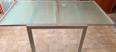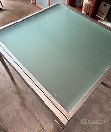 Vendo tavolo quadrato in vetro con gambe in acciaio, elegante e pratico