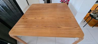 Tavolo quadrato in legno vintage. Stile scandinavo con piedi smontabili tramite viti. Fuori produzione. Misure 135x135x70