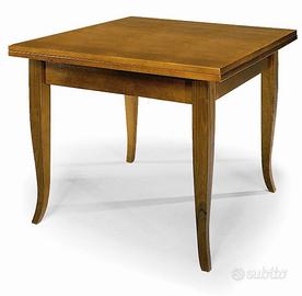 Tavolo quadrato allungabile in arte povera con apertura a libro.