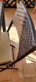 tavolo rattan con piano in vetro 90x90 e due sedie.