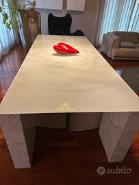 Tavolo base vetro , piedi in marmo completo di 4 sedie super elegante.