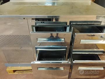 Tavolo refrigerato Isa inox misura 150 cm di larghezza e 80 cm di profondità, temperatura da 8 a 0 gradi,quattro cassetti