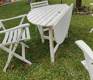 Tavolo Reguitti 4 sedie legno bianco pieghevoli