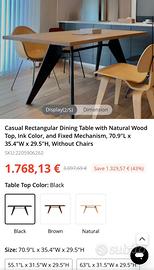 Tavolo nero legno naturale misura 180 x 90 cm Stile Jean Prouve‘ Prezzo originale 3097,69 Scontato 1768,1€ In vendita a 1000€ nuovo ancora imballato