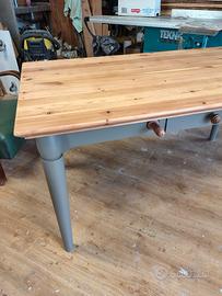 Tavolo da cucina color tabacco con cassetto e mattarello. Piano legno naturale trattato con vernice trasparente opaca e telaio trattato con colore ad acqua tabacco finitura opaca Dimensioni Lunghezza 149cm Larghezza 80cm Altezza 76cm