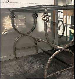 Tavolo in ferro battuto a mano con vetro rettangolare 80 lunghezza 50 larghezza 1 metro altezza peso 40 kg Pezzi tavolo disponibile 2