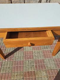 MERCATINO DEL MOBILE USATO: Vendo Tavolo rettangolare da cucina in legno chiaro pratico e adatto a qualsiasi ambiente, classico o moderno. Tavolo rustico in legno Massello L.120 H. 75 P. 76. Ritiro a Cagliari Pirri a carico del cliente, possibilità di consegna a domicilio dietro extra per il trasporto entro km dopo visione del tavolo.