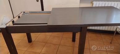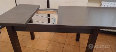 Tavolo rettangolare di colore wenghe allungabile. Dimensioni : l. 120 h 80 p. 80 Allunga estraibile con sistema girevole. Dimensioni tavolo allungato l.160. Struttura robusta e stabile. Ottimo stato. No spedizione