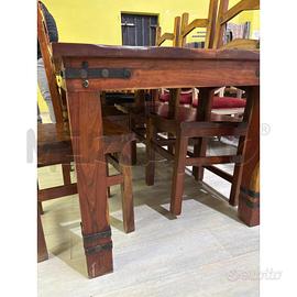 TAVOLO RETTANGOLARE CON 6 SEDIE MOGANO