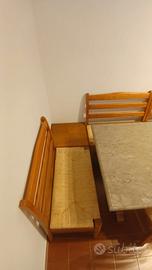 Tavolo in rovere massello con marmo grigio marca Berloni con 3 panche e 2 sedie in paglia e giropanca, misure tavolo 160x80, buonissimo stato; paglia come nuova xche sempre temuta coperta da cuscini; segni di usura non eccessivi; marmo con macchie che può essere arrotato e tornare nuovo e lucido come in originale. Ritiro a domicilio a carico dell'acquirente