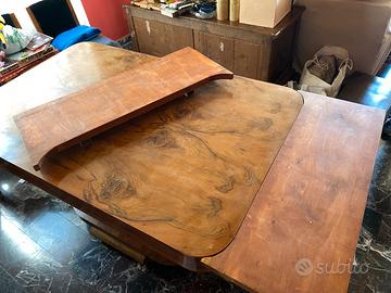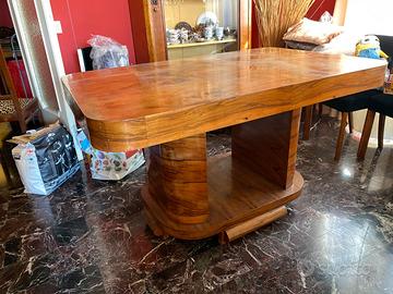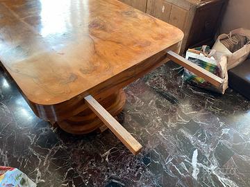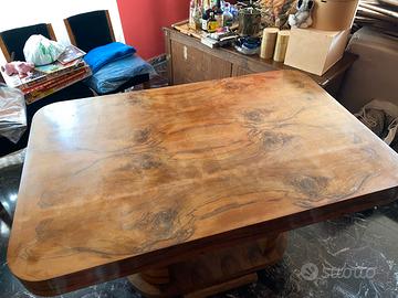 Tavolo rettangolare da pranzo Art Déco allungabile (NO sedie) Radica di noce, un classico del modernariato italiano dell'epoca, con il basamento centrale a pedana CONTATTAMI X IL PREZZO