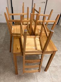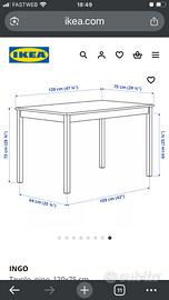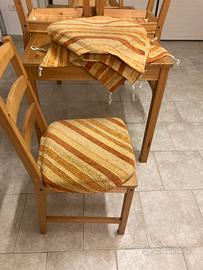 Vendo tavolo in pino massiccio grezzo, un materiale naturale che puoi oliare o verniciare come preferisci, dell’Ikea, mod Ingo con 4 sedie abbinate comprese di cuscino, mai isato , come nuovo, le misure sono allegate in foto