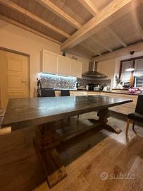 Tavolo con piano effetto acciaio industrial e legno di pino massiccio, maison du monde Dimensioni : L280 X H 78 X P 100 cm. Peso : 116kg