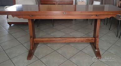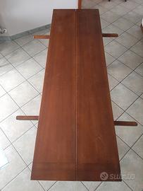 Comodo tavolo in legno massello rettangolare richiudibile a libro.