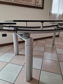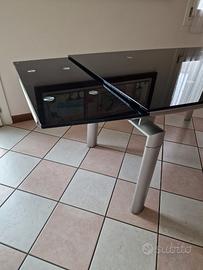 TAVOLO IN VETRO SCURO, 150x90 allungabile da entrambi i lati (240x90)può ospitare fino a 8/10 persone.