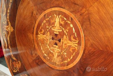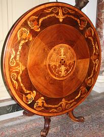 Tavolo intarsiato ribaltabile fine 800 in perfetto stato. Diametro del piano 145 cm. Disponibile a Napoli, prezzo trattabile