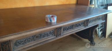 grande tavolo rinascimentale , mancante di traversa che lega le due zampe